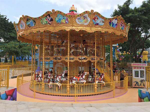 豪華轉(zhuǎn)馬作為游樂設(shè)備行業(yè)的標(biāo)志,一直經(jīng)久不衰,他的趣味性加上豪華轉(zhuǎn)馬外觀的多樣性使得每天乘坐轉(zhuǎn)馬的人不在少數(shù),尤其是小孩子,非常喜歡這類的大型游樂設(shè)備,很多大人把小孩放到轉(zhuǎn)馬上就不管了,以為在上面有轉(zhuǎn)馬經(jīng)營(yíng)人員看著就可以了,其實(shí)不然,像一般的38座豪華轉(zhuǎn)馬來說,坐滿了就有三四十個(gè)人,一個(gè)游樂設(shè)備經(jīng)營(yíng)者根本就招呼不過來,更別說龍之盈推出的76座豪華轉(zhuǎn)馬了!