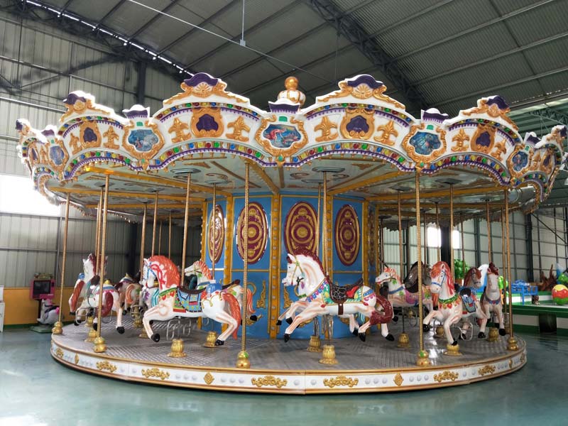 豪華轉馬是一款非常受歡迎的游樂設備,根據不同的設計擁有不同的外觀風格,或者富麗堂皇,或者卡通可愛。豪華轉馬又具備投資小、收益快的投資優勢,備受中小投資者的青睞。